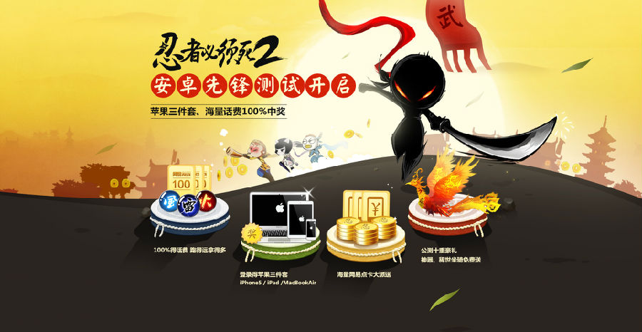 在5月29日,《忍者必须死2》登陆iOS苹果商店,并放出多重活动,奉上好礼为玩家助跑:话费、点卡、虚拟道具等种类繁多,更有苹果豪华三件套(iPhone、iPad、MacBook)豪礼送出。