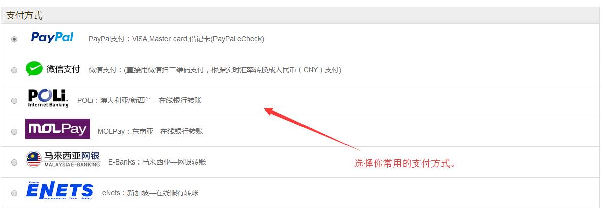 需要注意的是选择充值产品后你需要选择适合的付款方式,例如PayPal、西联、mastcard等,海外信用卡都可以用。